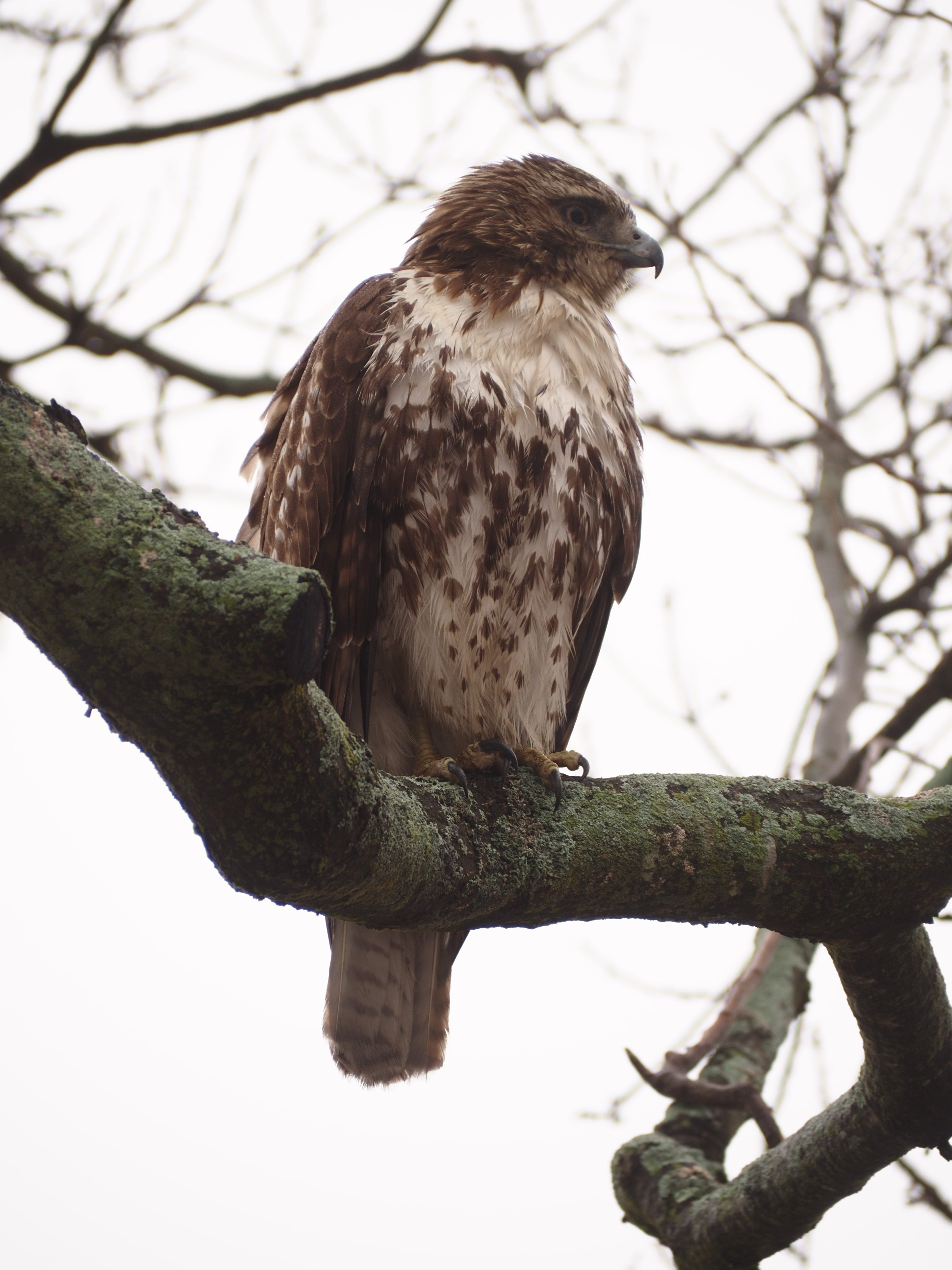 I went for a photo walk on a misty and cold day, left my phone behind, and saw this hawk, quite close and personal: